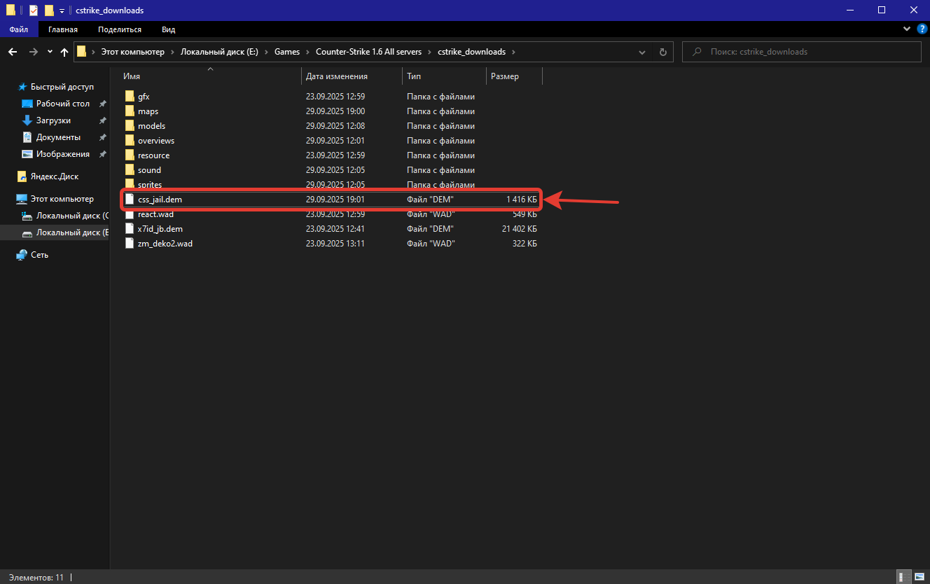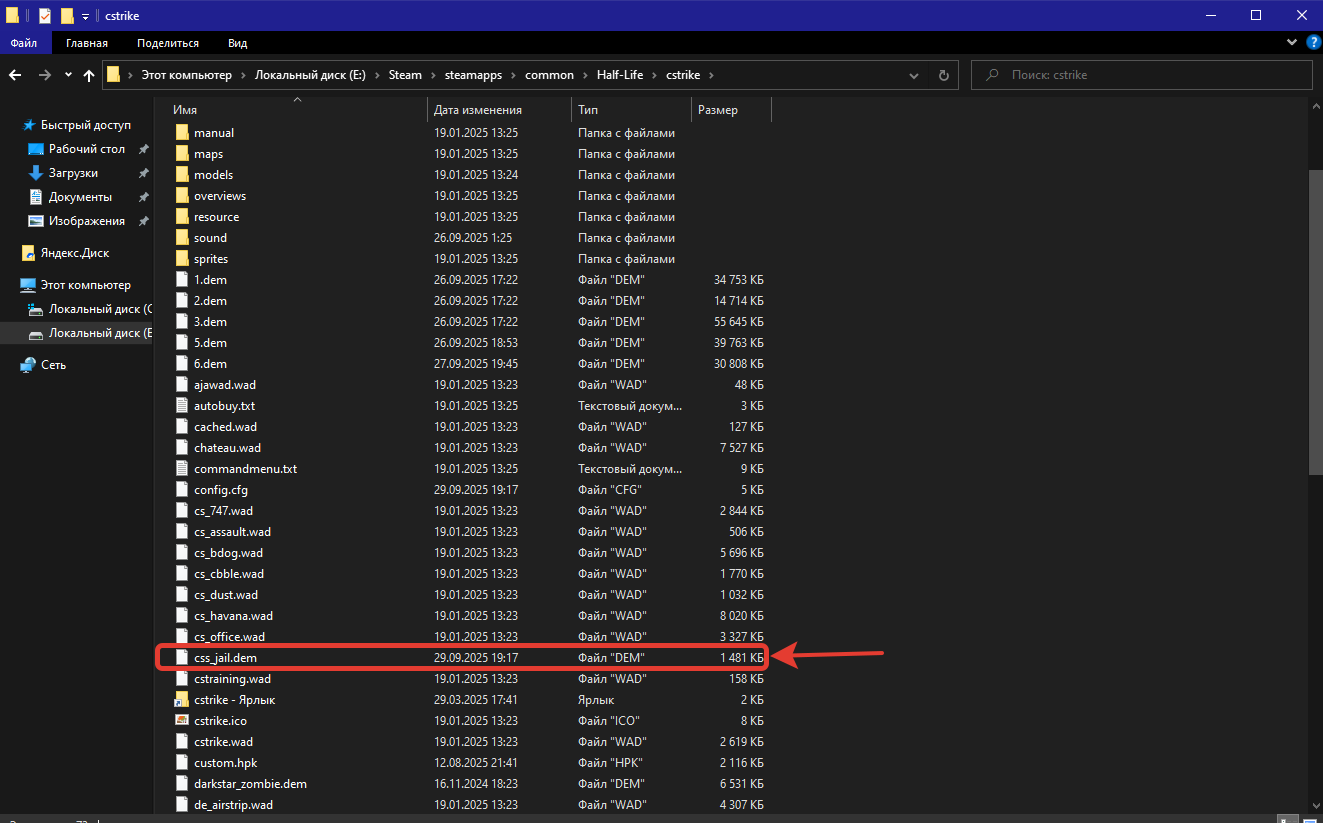 3 Шаг. Выбираем нужный файл типа "css_jail.dem", и вот наша демонстрация.
