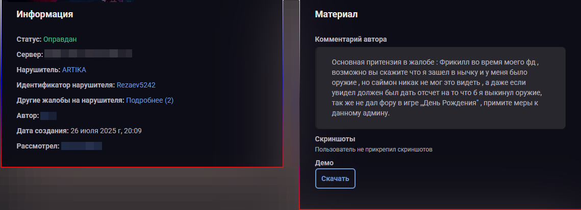 Данная тема посвещена для игроков, которые незнают как подать жалобу на игроков/модераторов. Убедительная просьба сначала указать данные на форуме, перед тем как отправлять заявку. Без дополнительных доказательств нарушений заявка → аннулируется.